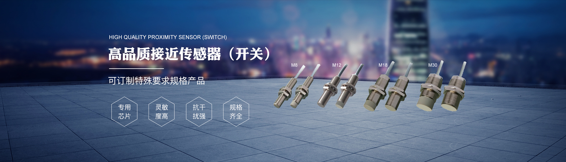 本公司硏發生產的接近幵關、紅外光電開關、紅外光幕等傳感器產品,采用德國D1NS00系 列標準及GB / TI 4048 . 10—1999國家標準,技術水平在國內同行中處于領先地位。產品廣泛應用于軸承、紡織、冶金、電梯、機床等行業的自動控制、質量檢測和安全保護。